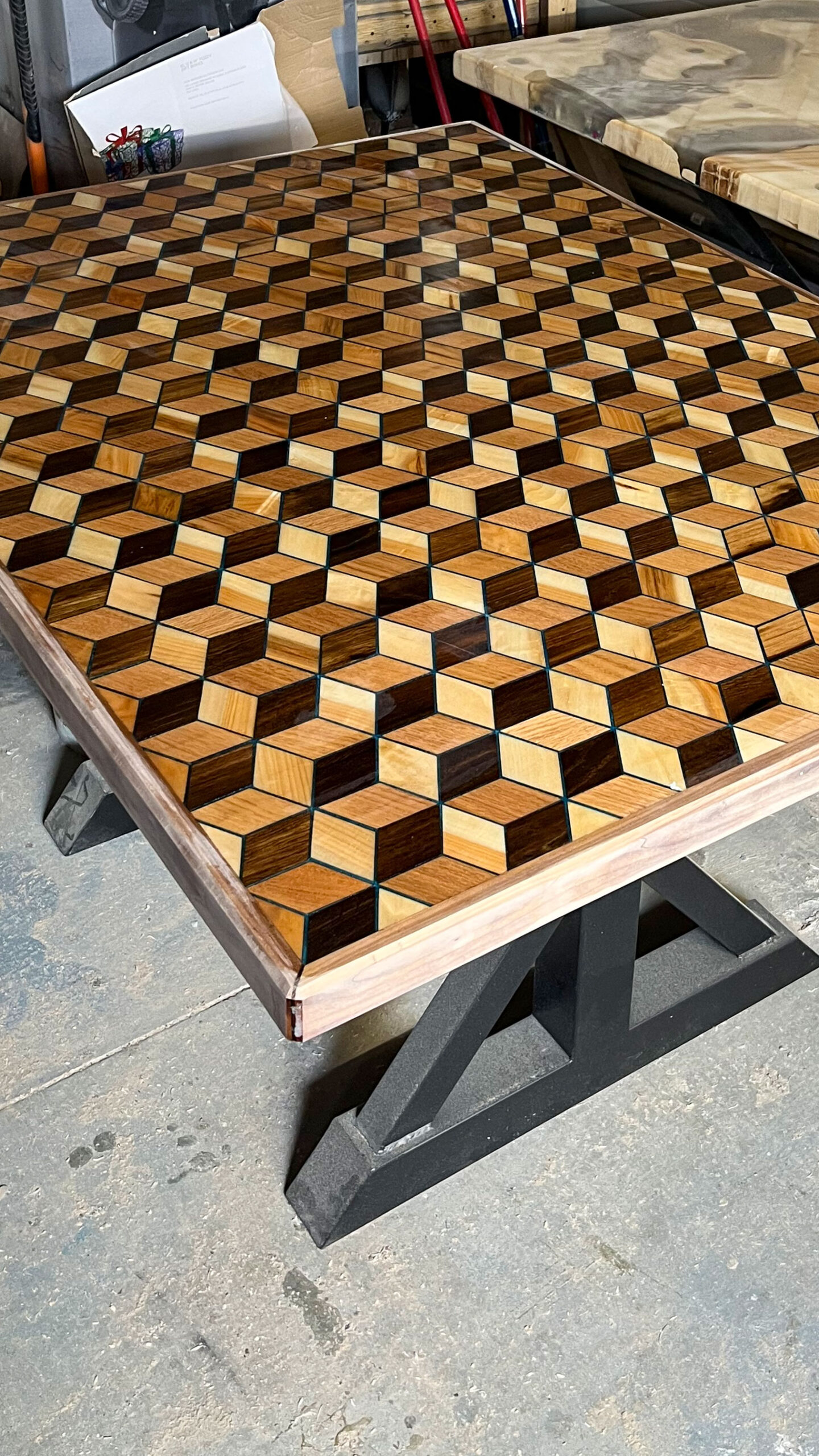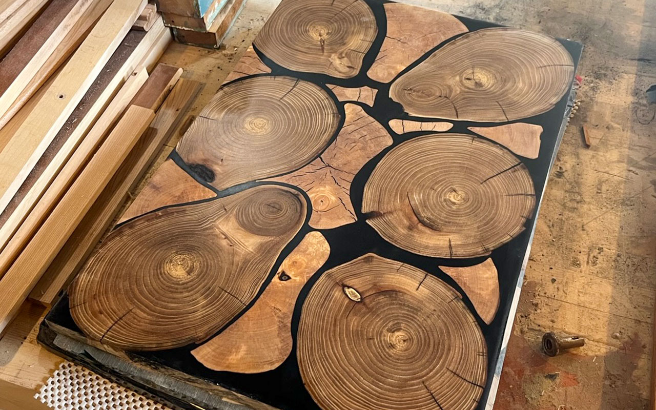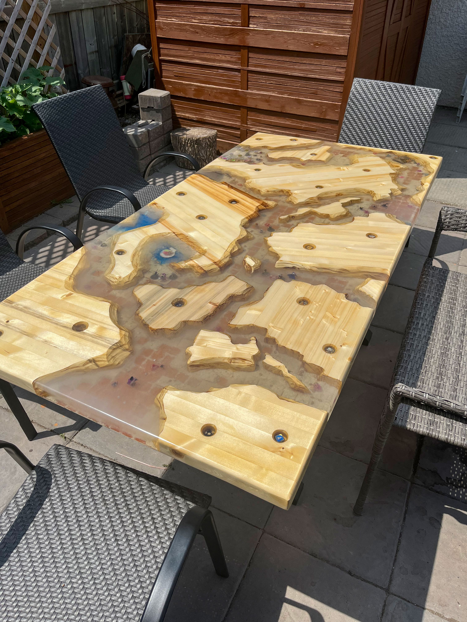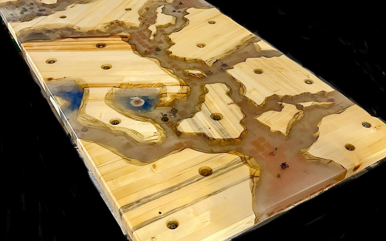 Our hand crafted tables can have various designs depending on the what you want. We can make anywhere from a simple wood table to a really creative doom themed table sealed with resin.