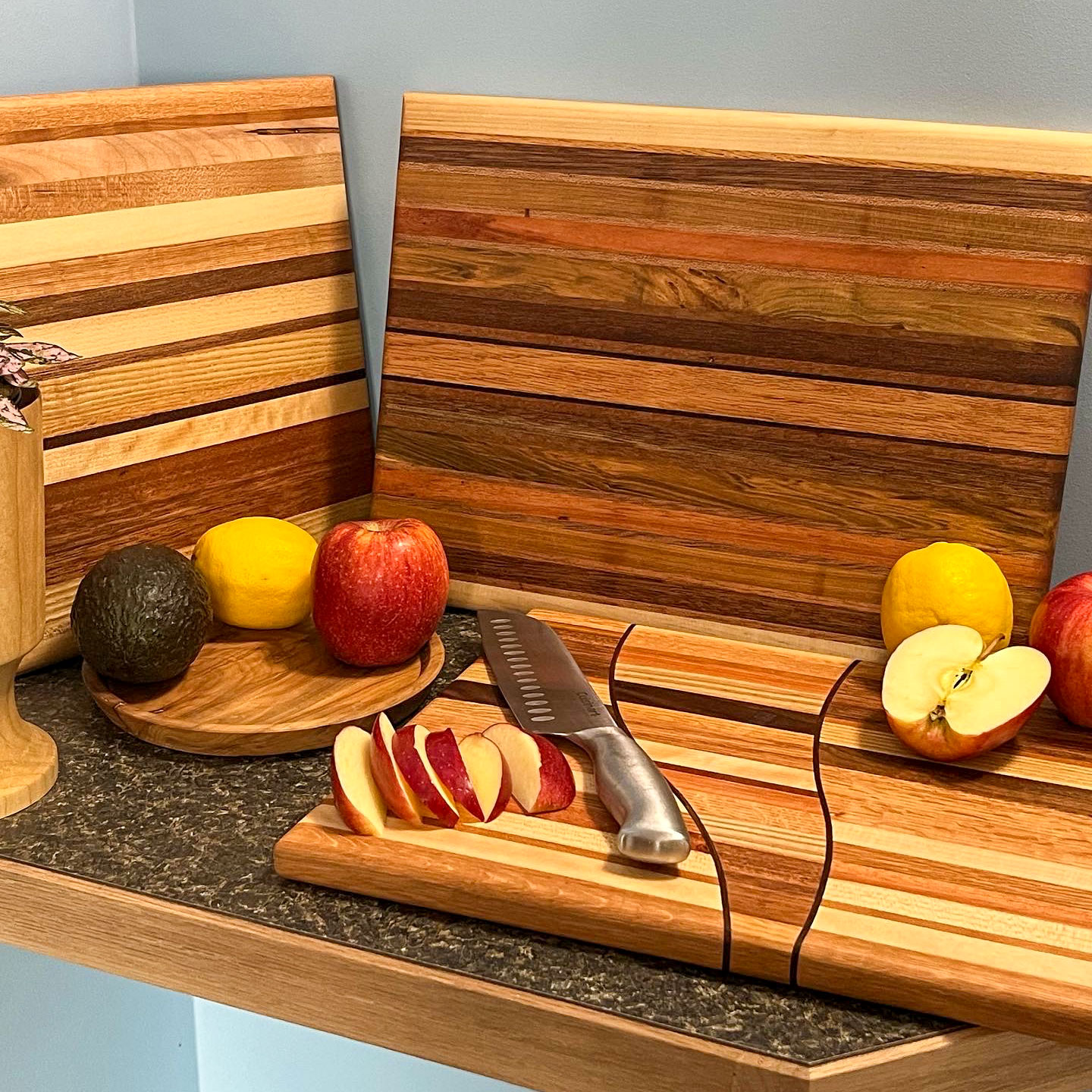 Wide variety of custom cutting boards available for pickup in Winnipeg.